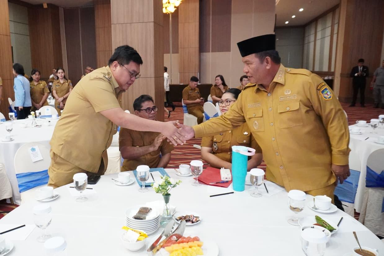 Wakil Bupati Deddy Abdul Hamid mengikuti Rapat Koordinasi dan Evaluasi (Rakorev) Tim Koordinasi Penanggulangan Kemiskinan Daerah (TKPKD) Provinsi Sulut dan Kabupaten/Kota bersama lintas sektor tahun 2025 di Hotel Aryaduta Manado, Selasa (7/10/2025).