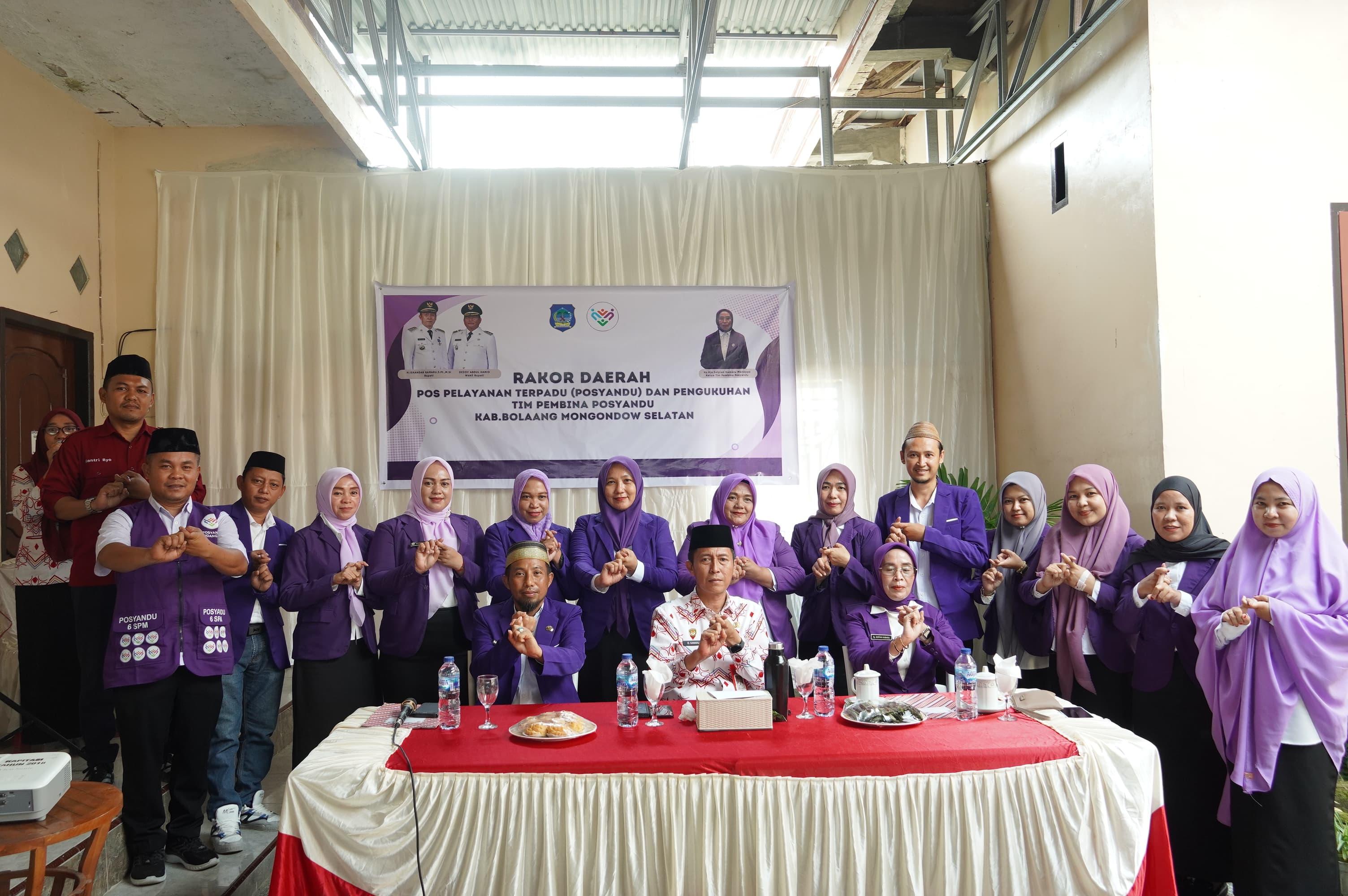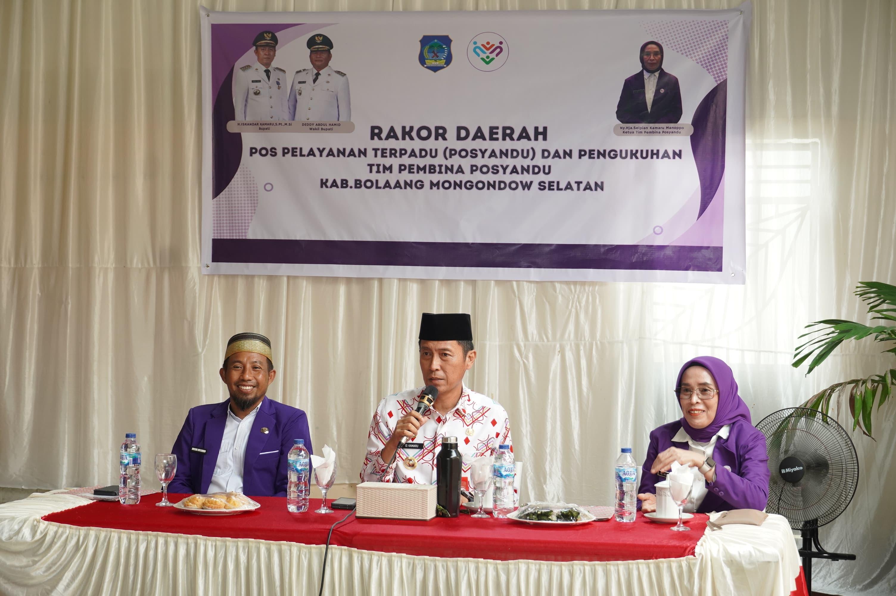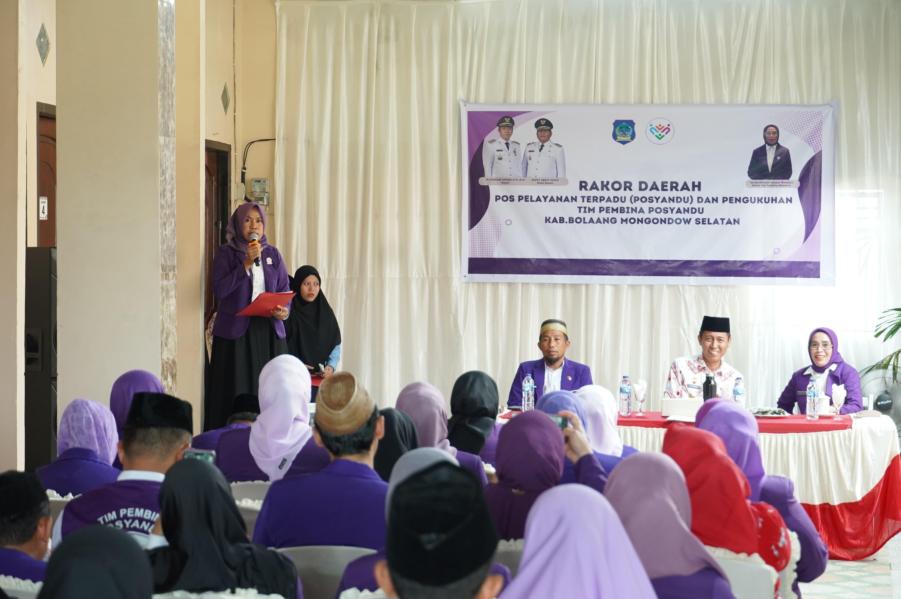 Bupati H. Iskandar Kamaru, SPt, MSi didampingi Ketua TP-PKK sekaligus Ketua Pembina Posyandu Kabupaten Bolaang Mongondow Selatan Ny. Hj. Selpian Kamaru-Manoppo membuka Rapat Koordinasi Daerah Posyandu sekaligus pengukuhan Tim Pembina Posyandu Bolsel di Desa Popodu, Kecamatan Bolaang Uki, Kamis (4/12/2025).
