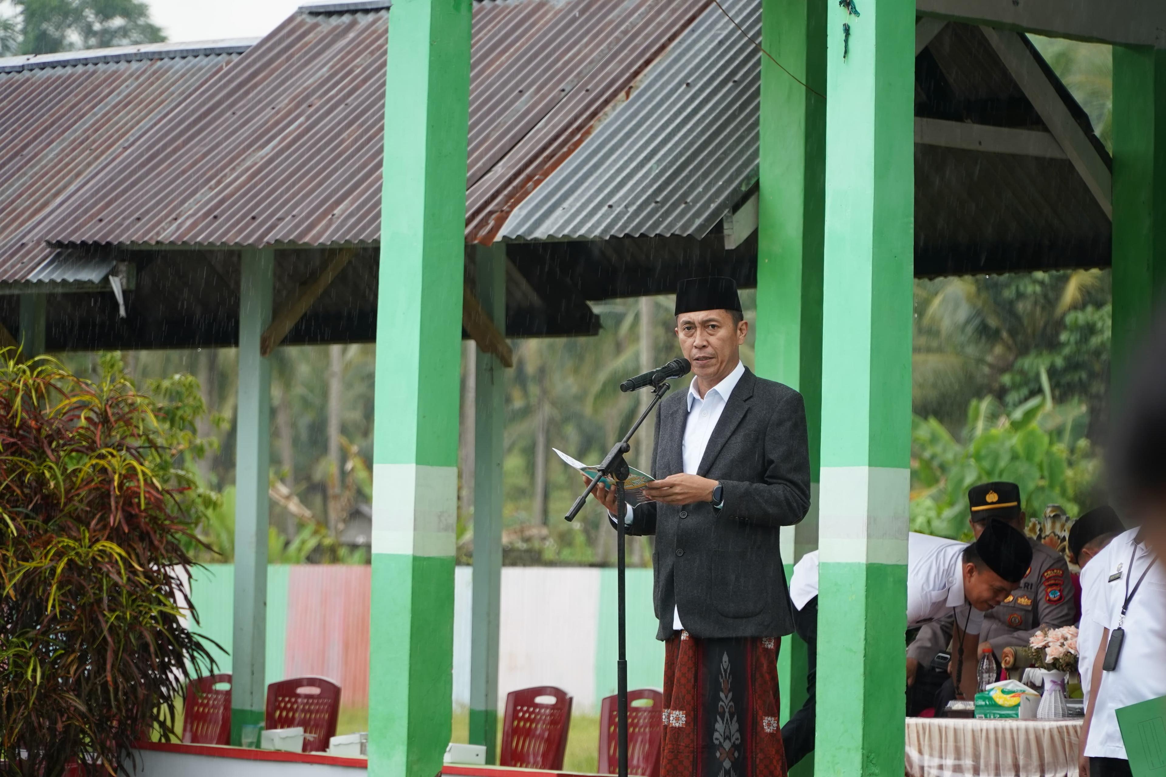 Pernyataan penuh makna itu dipaparkan Bupati H. Iskandar Kamaru SPt, MSi saat memberikan amanat pada peringatan Hari Santri Nasional (HSN) Tahun 2025 di halaman Madrasah Ibtidaiyah Negeri (MIN) 1 Bolsel, Desa Tolondadu Kec. Bolaang Uki, Rabu (22/10/2025).