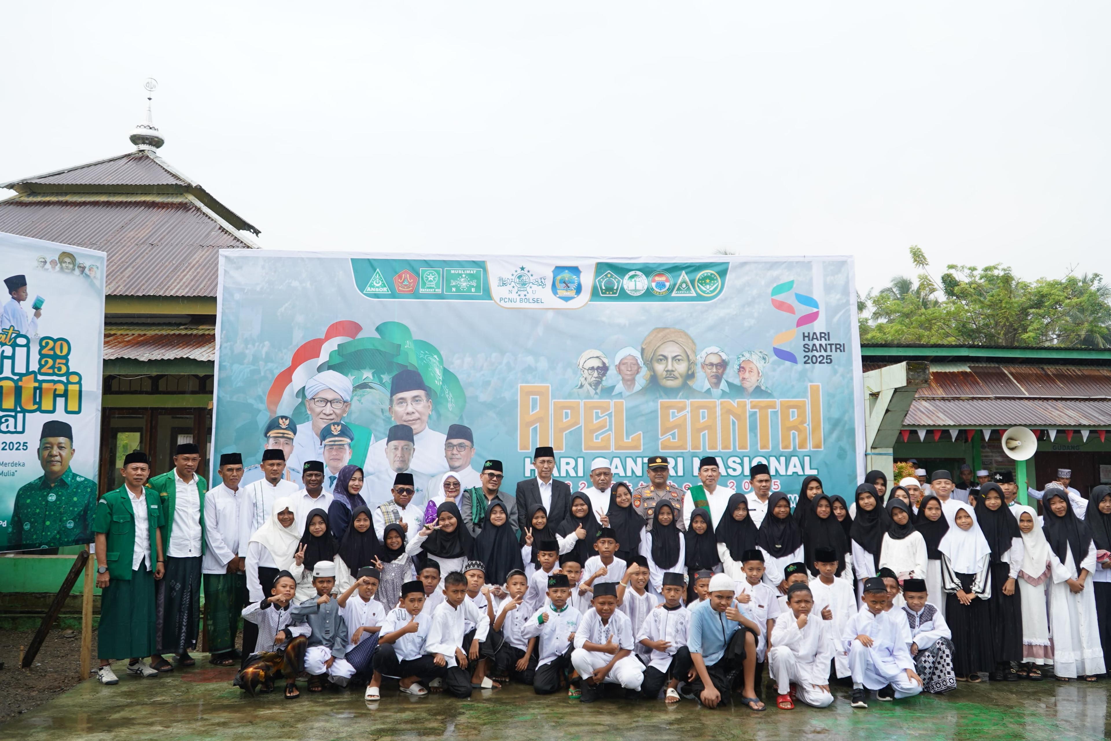 Di tengah suasana khidmat yang dipenuhi lantunan selawat dan semangat kebersamaan, ratusan santri dari berbagai wilayah Bolsel mengikuti upacara dengan penuh antusias. Kegiatan ini turut dihadiri oleh Kepala Kantor Kementerian Agama Kab. Bolsel H. Muh. Thaib Mokobombang, Ketua Nahdlatul Ulama (NU) Bolsel yang membacakan Resolusi Jihad, Wakil Ketua PW Ansor Sulut, Ketua Muhammadiyah Bolsel, jajaran Forkopimda, para pejabat tinggi pratama Pemda, para guru, dan tokoh masyarakat.