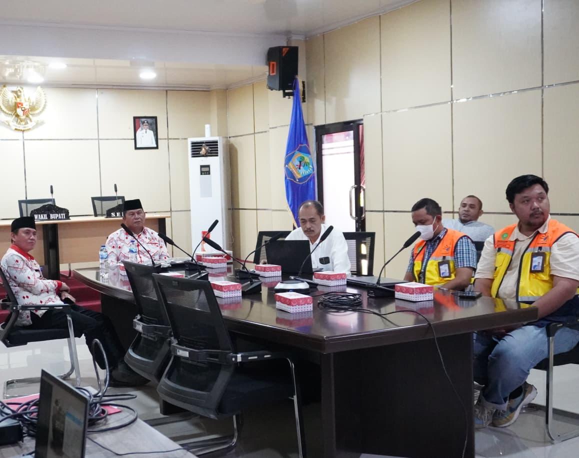 Wakil Bupati Deddy Abdul Hamid didampingi Direktur RSUD Bolsel dr. Sadli Mokodongan mengikuti rapat evaluasi mingguan secara virtual terkait progres pembangunan PHTC RSUD Bolsel. Rapat berlangsung di Ruang Berkah Kantor Bupati, Kawasan Perkantoran Panango, Kec. Bolaang Uki, Kamis (16/10/2025).