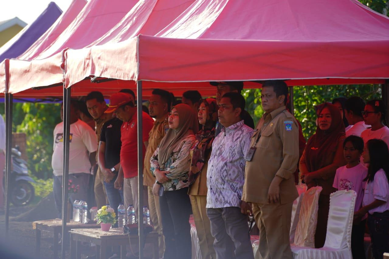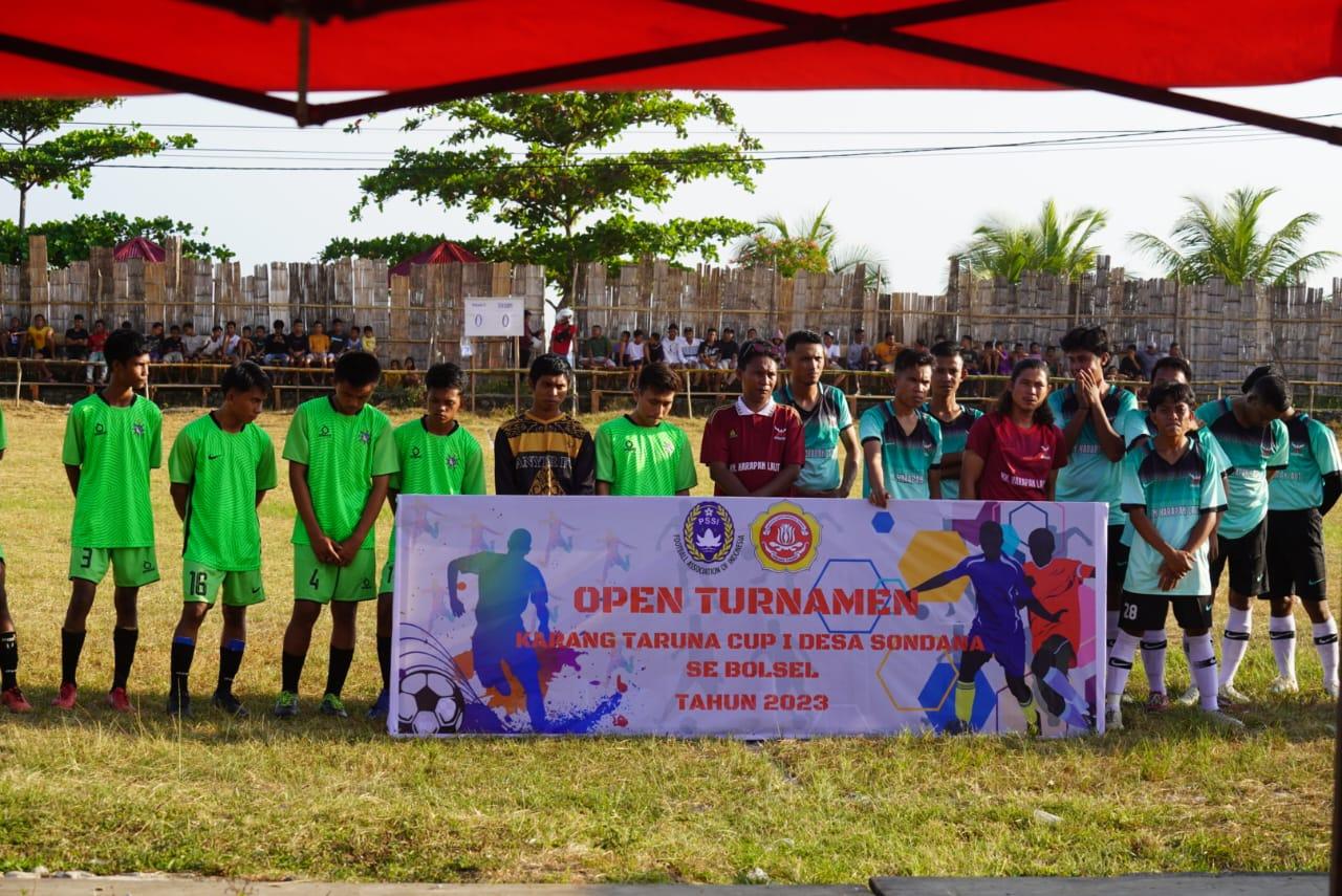 Bupati H. Iskandar Kamaru SPt, MSi dan Wakil Bupati Deddy Abdul Hamid membuka Open Turnamen Karang Taruna Cup I Desa Sondana di Lapangan Desa Sondana Kec. Bolaang Uki, Senin (9/10/2023).