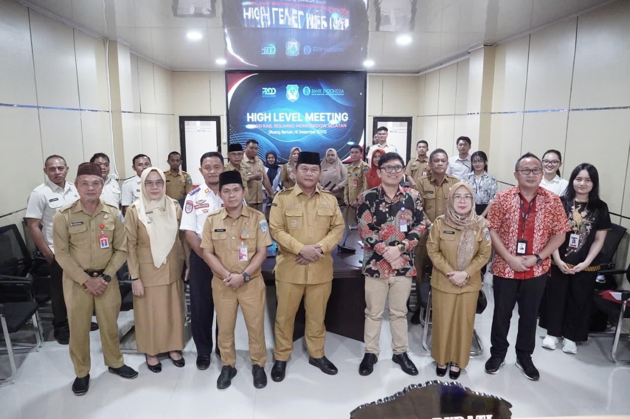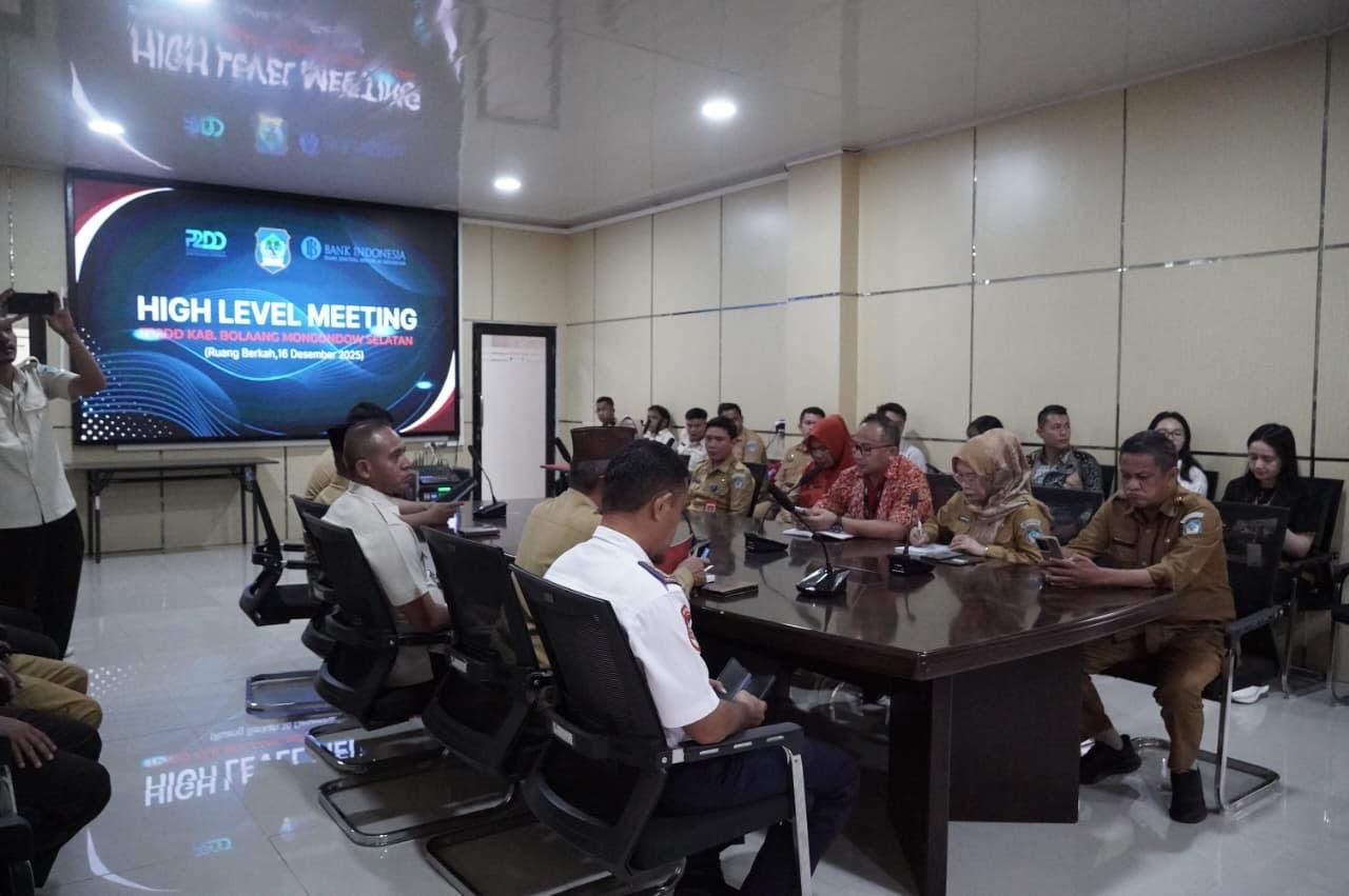 Komitmen Pemerintah Kabupaten Bolaang Mongondow Selatan dalam mempercepat digitalisasi transaksi keuangan daerah terus diperkuat. Hal ini ditegaskan Wakil Bupati Deddy Abdul Hamid saat acara High Level Meeting (HLM) Tim Percepatan dan Perluasan Digitalisasi Daerah (TP2DD) Kab. Bolsel bersama Bank Indonesia Perwakilan Provinsi Sulawesi Utara, yang berlangsung di Ruang Berkah Kantor Bupati, Kawasan Perkantoran Panango, Kecamatan Bolaang Uki, Selasa (16/12/2025).