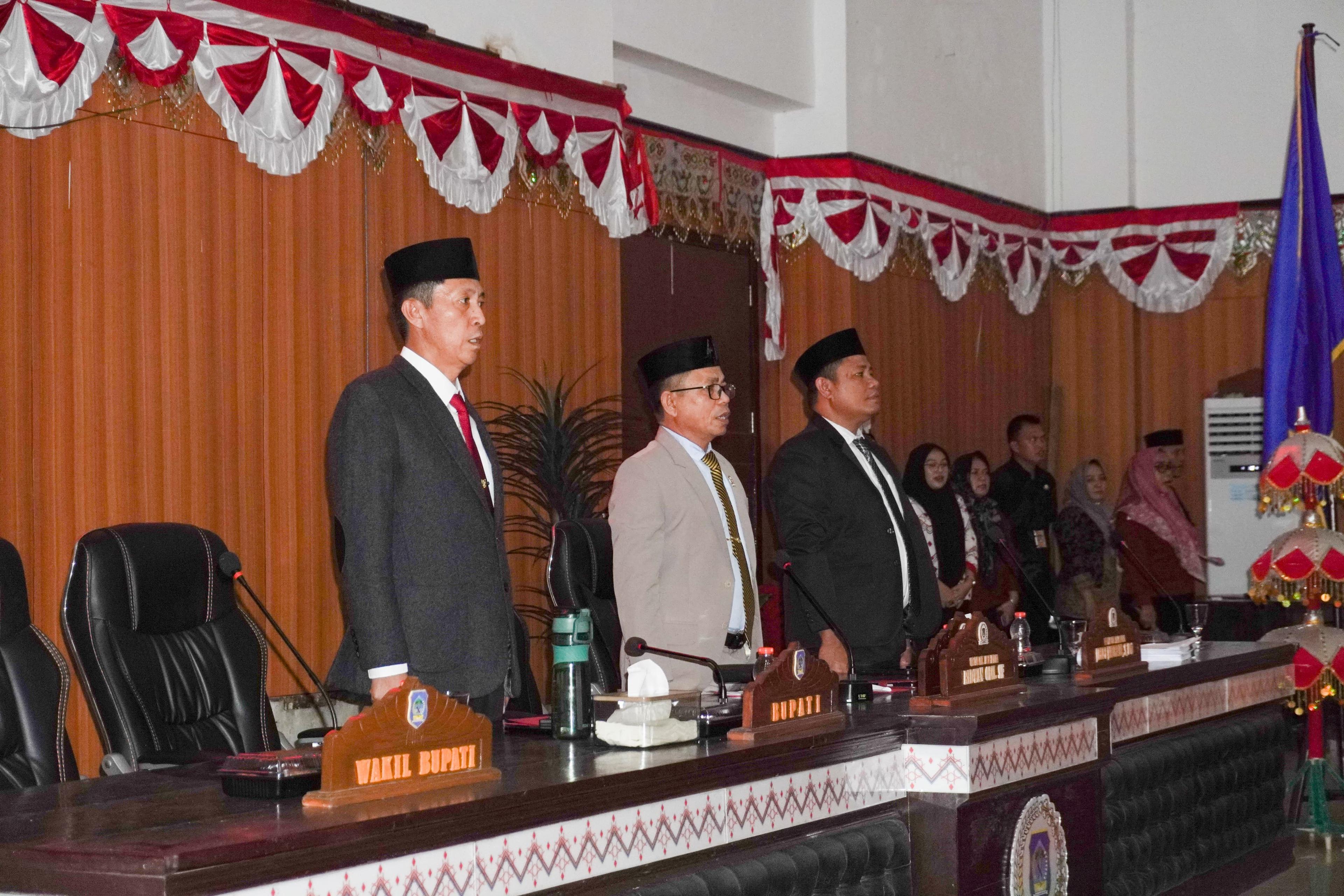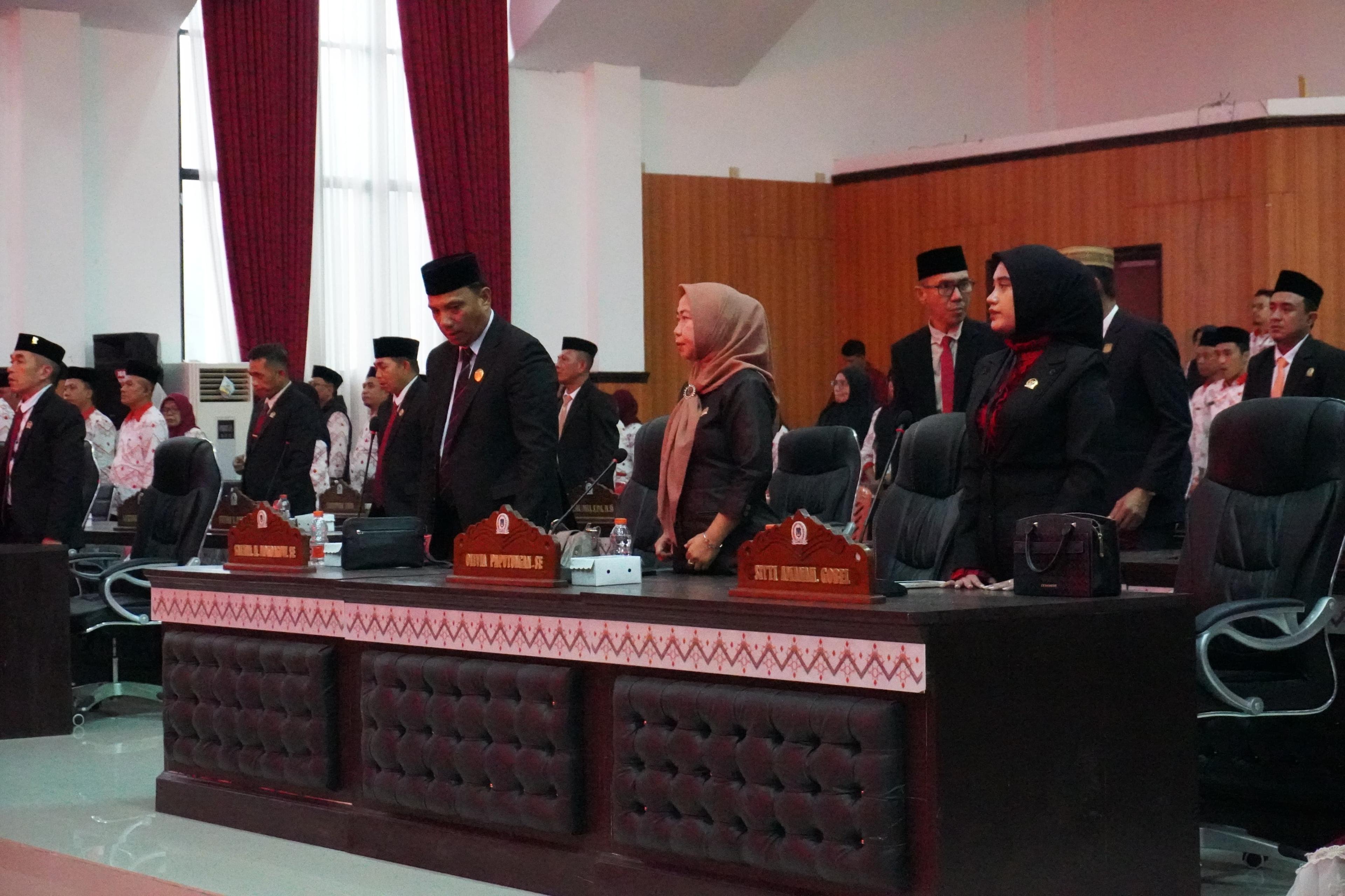 Rapat tersebut dipimpin Wakil Ketua DPRD Ridwan Olii SE dan Jelfi Jauhari. Hadir langsung Bupati H. Iskandar Kamaru SPt, MSi bersama para pejabat tinggi pratama, pemda, para Anggota DPRD, para camat dan sangadi se-Kab. Bolsel.
