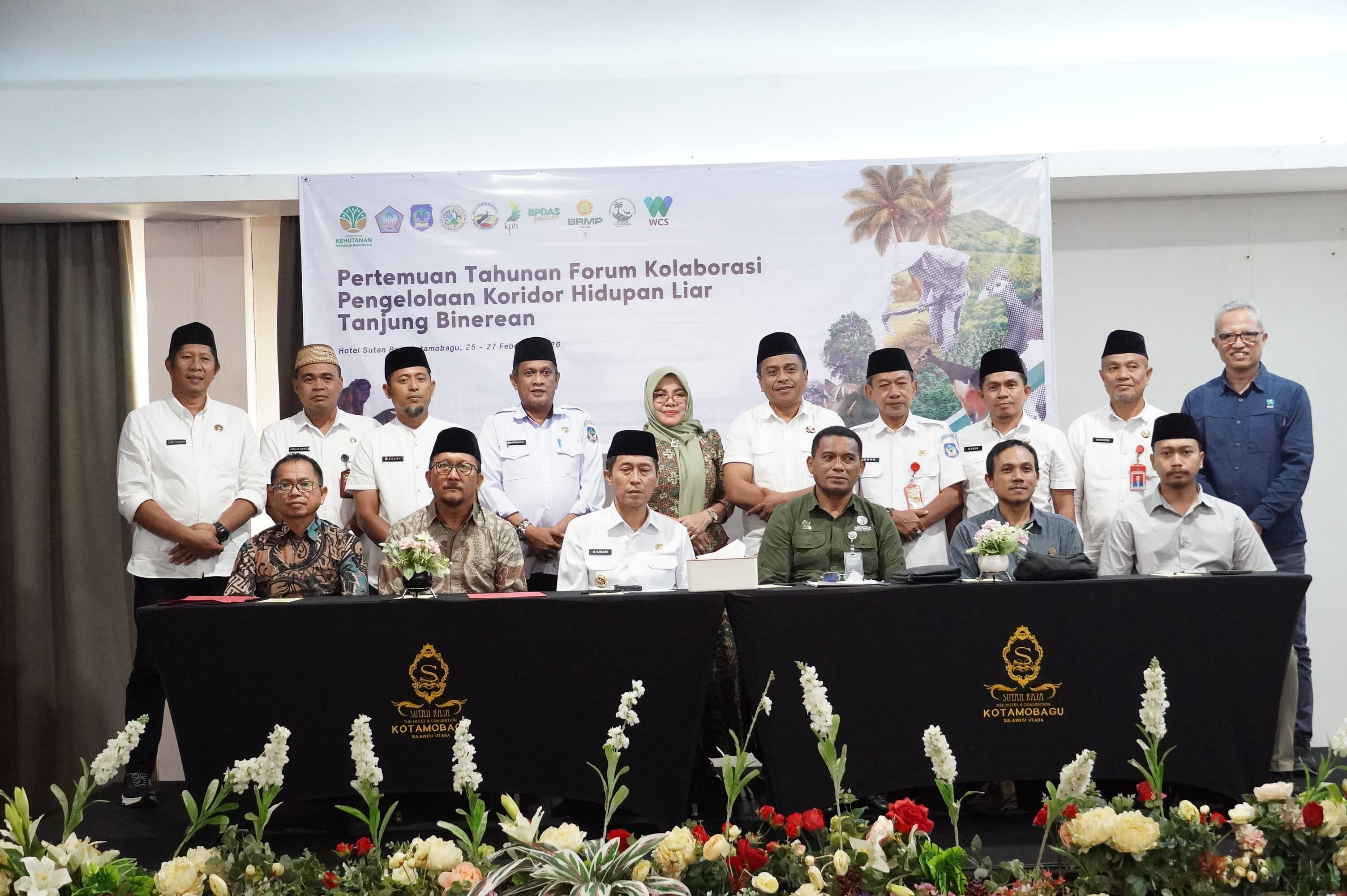 Masalah lingkungan hari ini bukan hanya yang terlihat di atas permukaan tanah, tetapi juga potensi yang terkandung di dalamnya. Karena itu, dibutuhkan solusi konkret melalui kolaborasi semua pihak agar keseimbangan antara pemanfaatan dan pelestarian dapat terjaga. Demikian penegasan Bupati H. Iskandar Kamaru SPt, MSi dalam pertemuan tahunan Forum Kolaborasi Pengelolaan Koridor Hidupan Liar Tanjung Binerean yang digelar di Hotel Sutan Raja Kotamobagu, Rabu (25/2/2026).