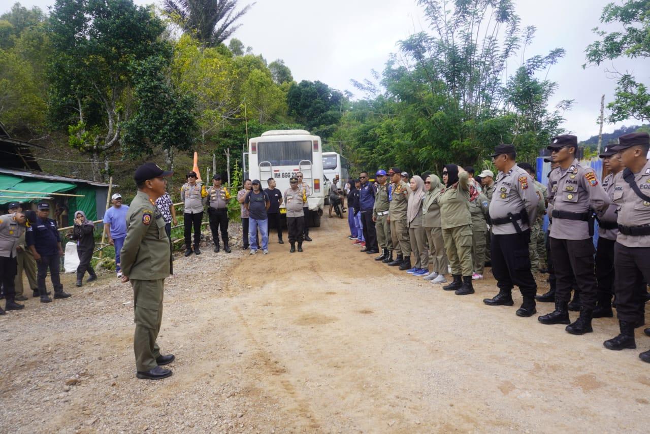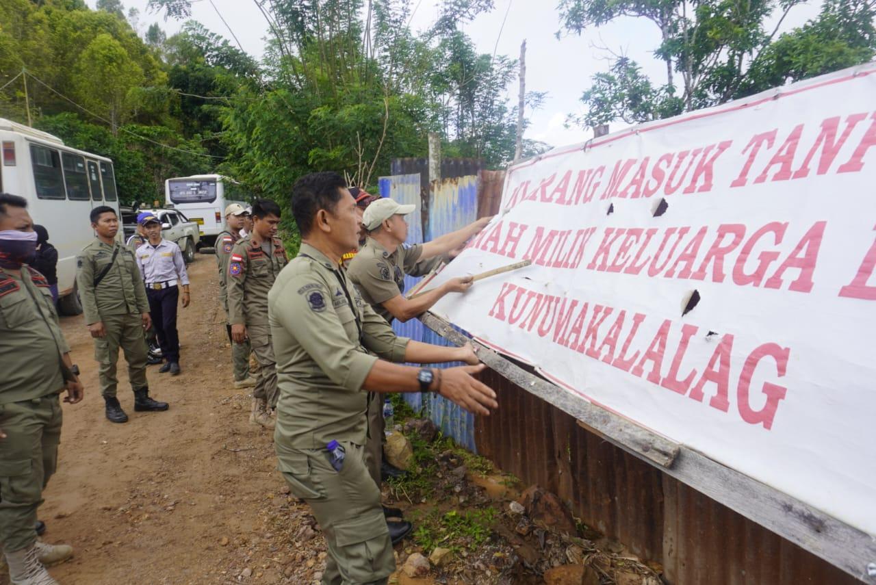 Dinas Satpol PP, Linmas dan Damkar Kab. Bolsel melaksanakan penertiban sekaligus membuka blokade penghalang jalan pertambangan di Km 12 wilayah Kecamatan Pinolosian Timur yang ditutup oleh keluarga Kunu Makalalag.