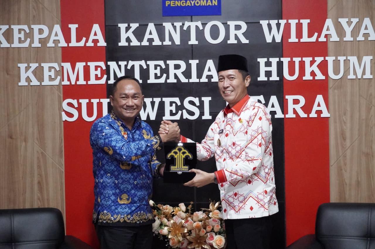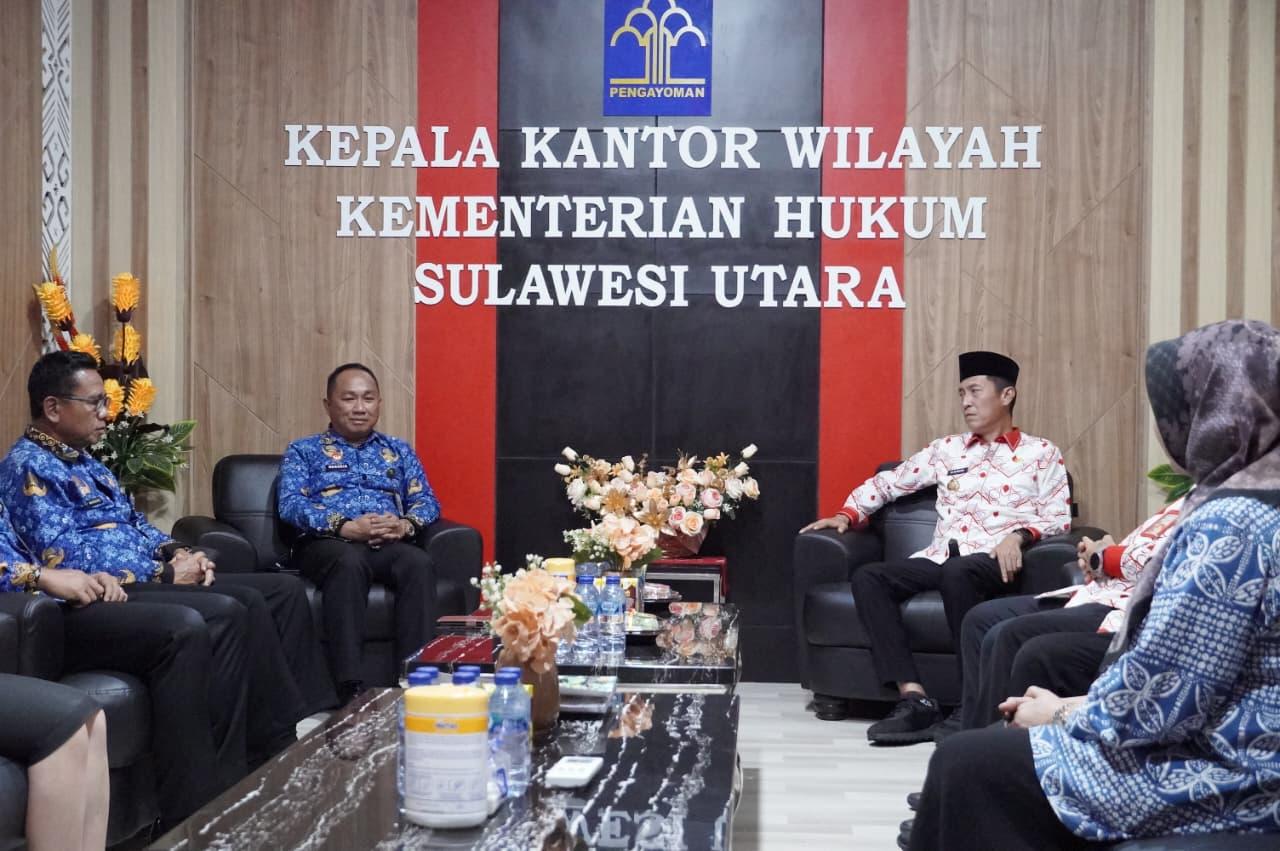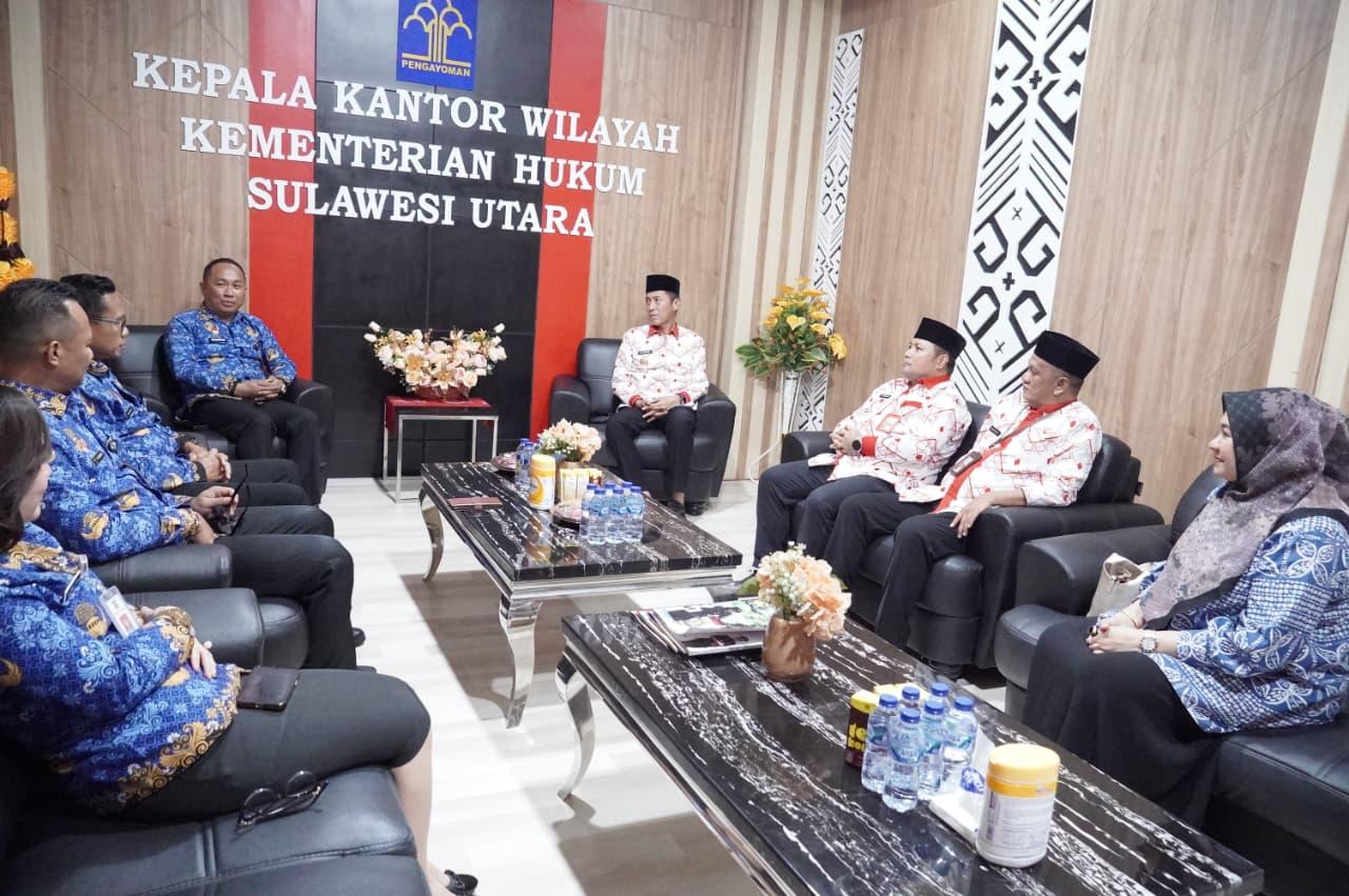 Usai melakukan kunjungan kerja ke Kantor BKN Regional XI Manado, Bupati H. Iskandar Kamaru SPt, MSi melanjutkan agenda ke Kantor Wilayah Kementerian Hukum (Kemenkum) Sulawesi Utara guna memperkuat sinergi di bidang hukum dan perlindungan aset daerah.