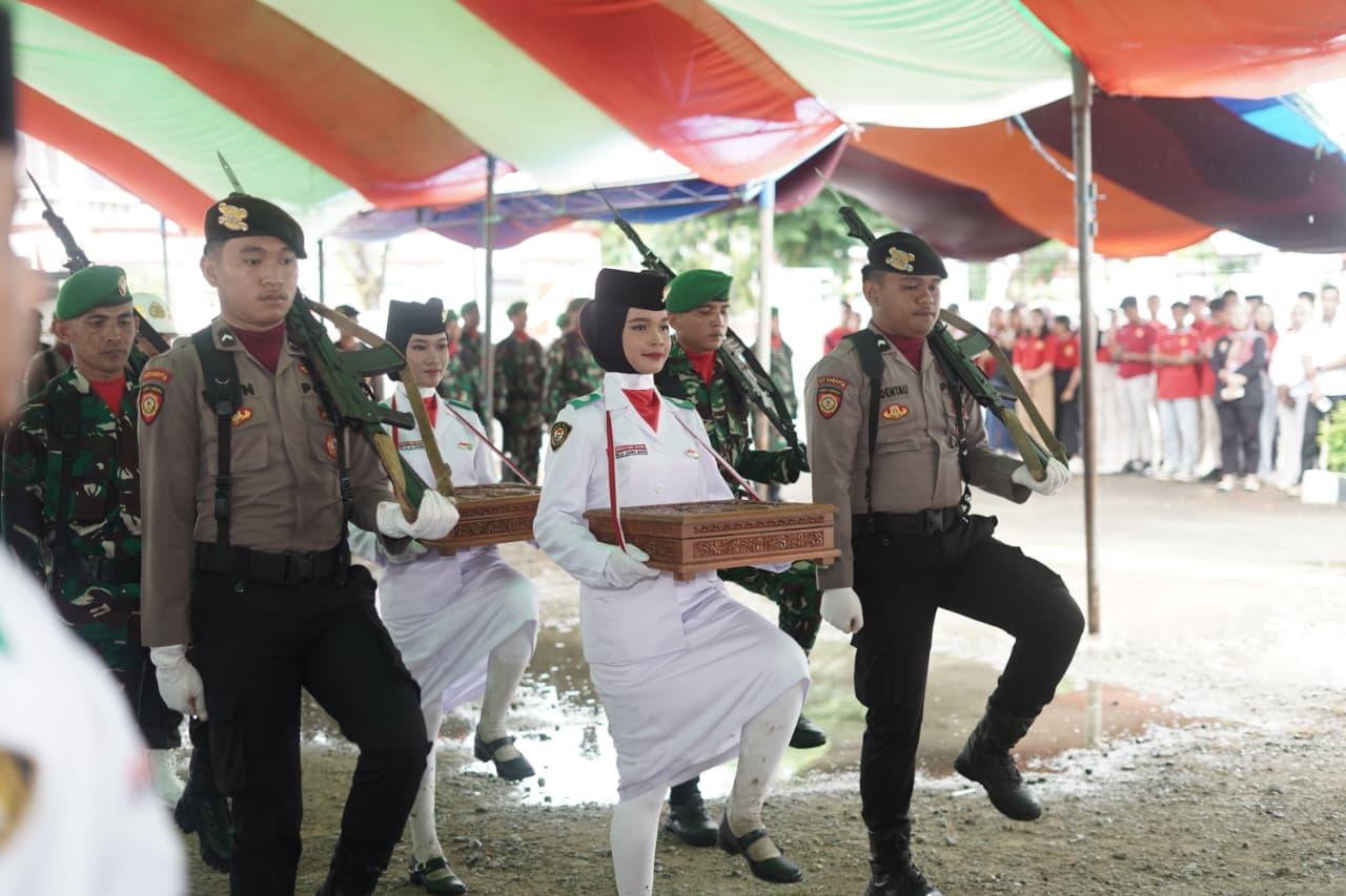 Prosesi pemindahan dan persemayaman dilaksanakan oleh Paskibraka Bolsel tahun 2025, yang nantinya juga akan bertugas pada upacara puncak peringatan HUT RI ke-80 tingkat kabupaten pada 17 Agustus nanti.