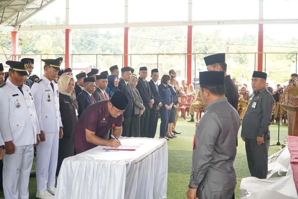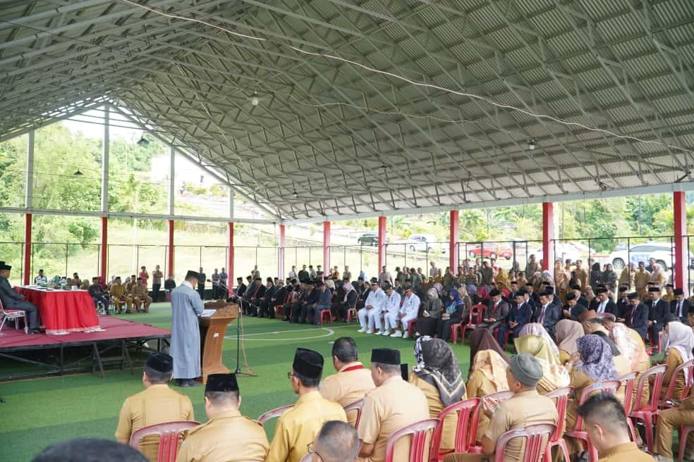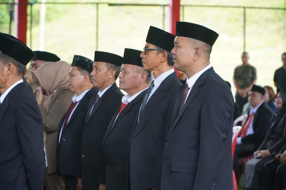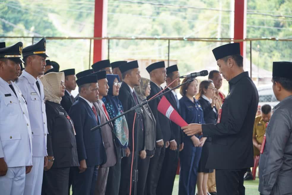 Kegiatan pelantikan berlangsung di Lapangan Futsal Kawasan Perkantoran Panango, Kec. Bolaang Uki, Selasa (7/10/2025). Hadir, Sekretaris Daerah M. Arvan Ohy SSTP, MAP, para pejabat tinggi pratama serta jajaran pejabat yang dilantik.