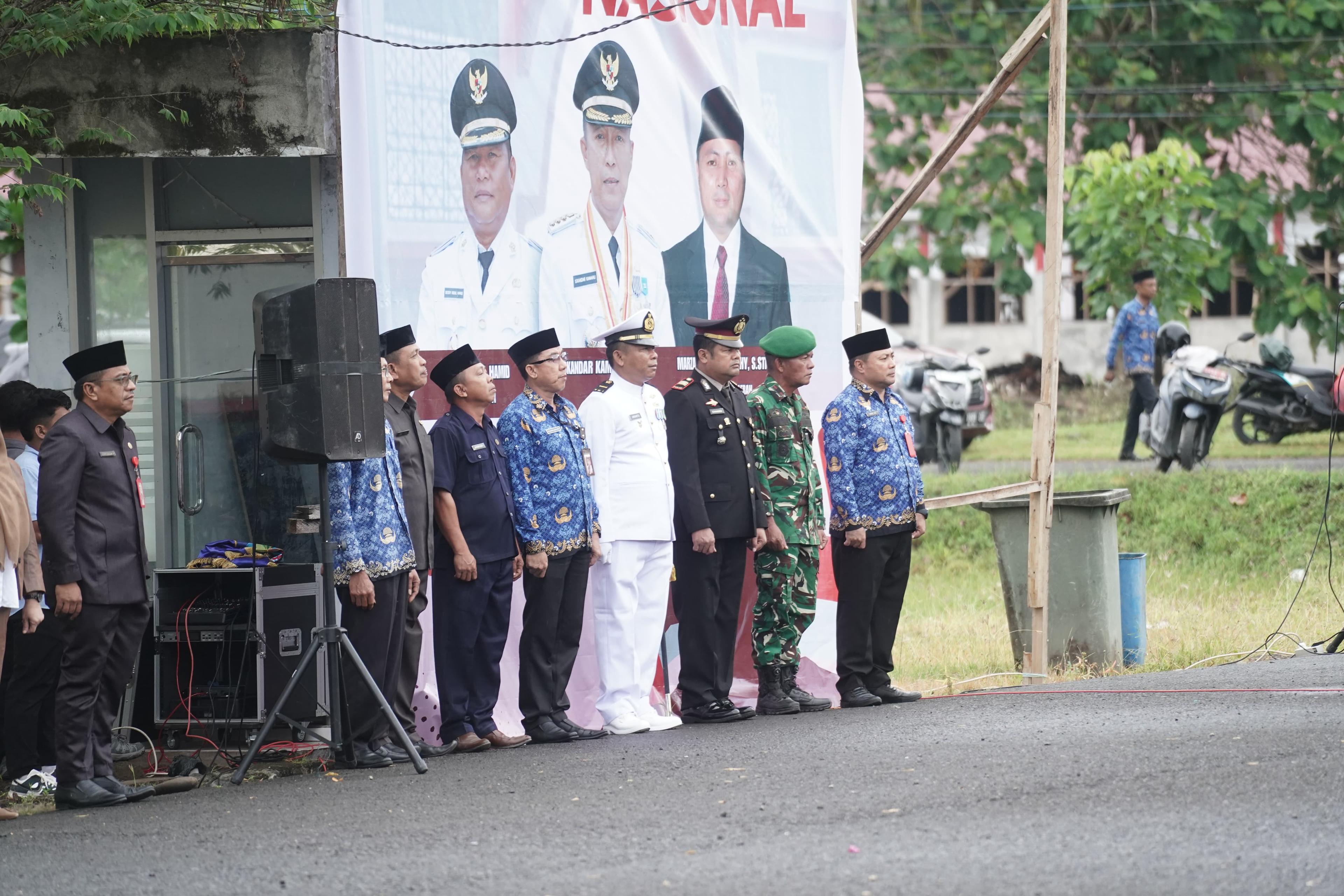 Kegiatan yang dirangkaikan dengan Apel Korpri tersebut berlangsung khidmat dan penuh makna, dipimpin langsung oleh Wakil Bupati Deddy Abdul Hamid, serta dihadiri jajaran Forkopimda, para veteran, Sekda M. Arvan Ohy SSTP, MAP bersama para pejabat tinggi pratama, administrator, pengawas, dan jajaran ASN lainnya.