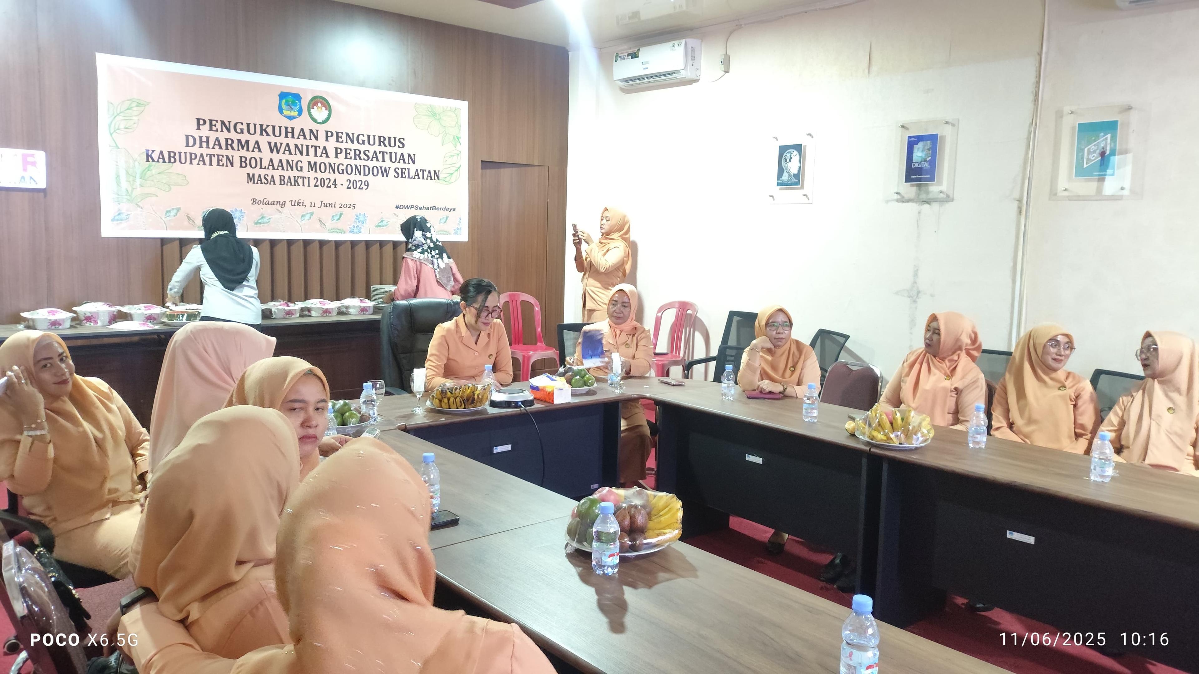 Kepengurusan Darma Wanita Persatuan (DWP) Kabupaten Bolaang Mongondow Selatan Masa Bakti 2024–2029 resmi dikukuhkan. Acara pengukuhan berlangsung secara daring dan digelar serentak bersamaan dengan pengukuhan pengurus DWP kabupaten/kota se-Sulut lainnya