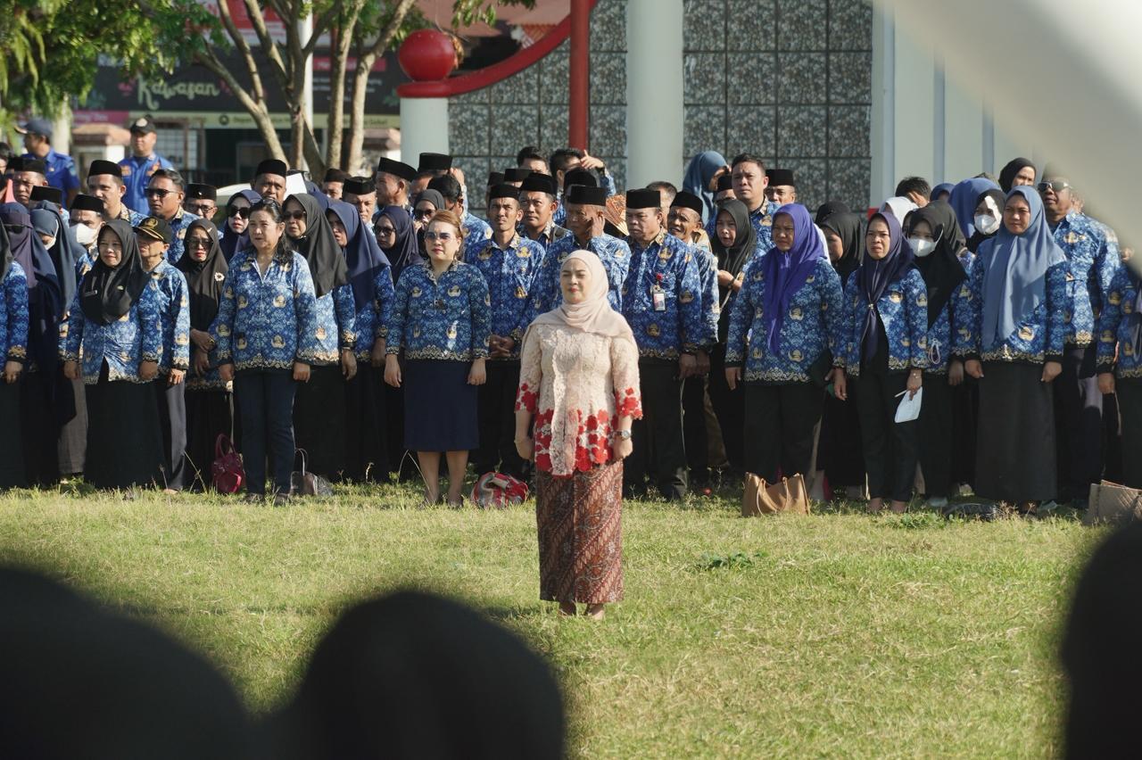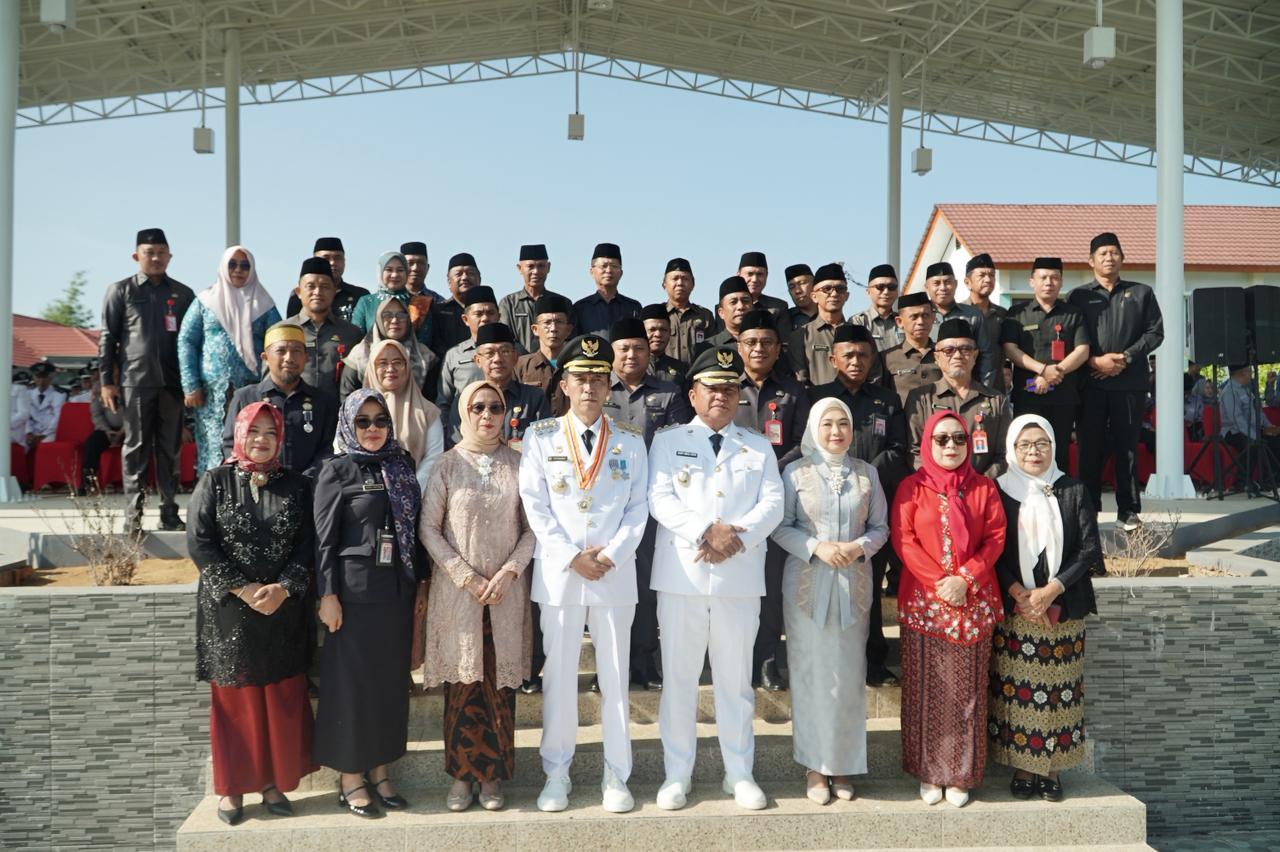 Upacara dipimpin langsung oleh Bupati H. Iskandar Kamaru SPt, MSi. Hadir, Wakil Bupati Deddy Abdul Hamid, Ketua TP-PKK Ny. Hj. Selpian Kamaru-Manoppo dan Sekretaris Ny. Rosdiana Abdul Hamid-Lapatola, unsur Forkopimda, Sekretaris Daerah M. Arvan Ohy SSTP, MAP, para pejabat tinggi pratama, administrator pengawas dan jajaran ASN, serta para Sangadi, hingga perwakilan organisasi perempuan.