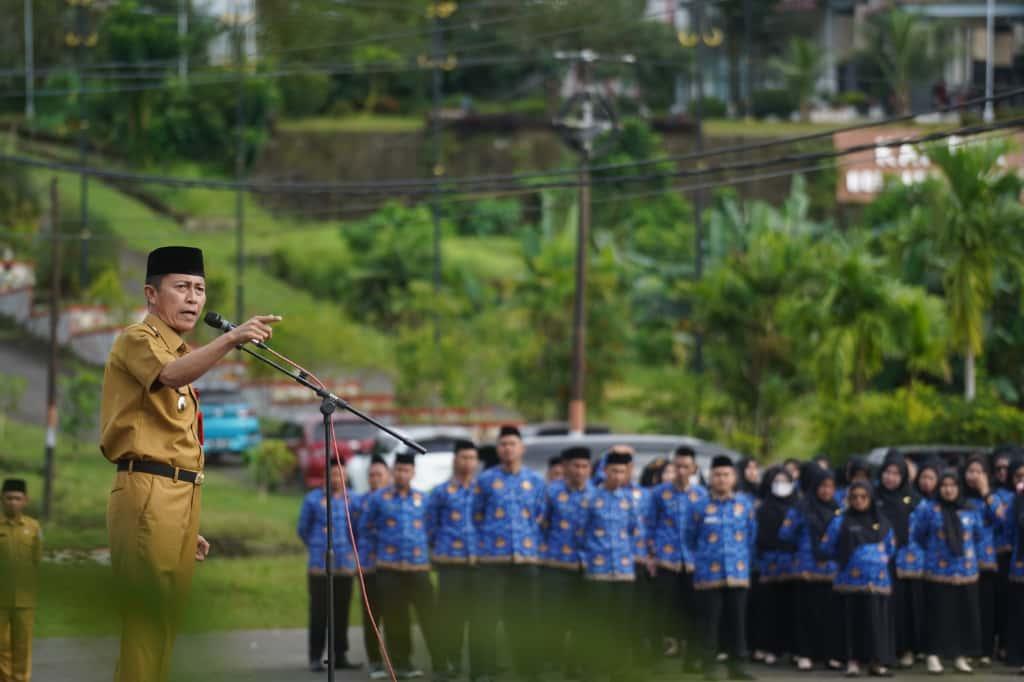 Hal tersebut ditegaskan Bupati H. Iskandar Kamaru SPt, MSi saat memimpin apel kerja di lingkup Pemkab Bolsel yang digelar di Lapangan Apel Kawasan Perkantoran Panango, Kec. Bolaang Uki, Senin (22/9/2025). Hadir dalam apel, Sekda M. Arvan Ohy SSTP, MAP, para pejabat tinggi pratama, administrator, pengawas, fungsional dan jajaran ASN lainnya termasuk para Pegawai Pemerintah dengan Perjanjian Kerja (P3K) Paruh Waktu.