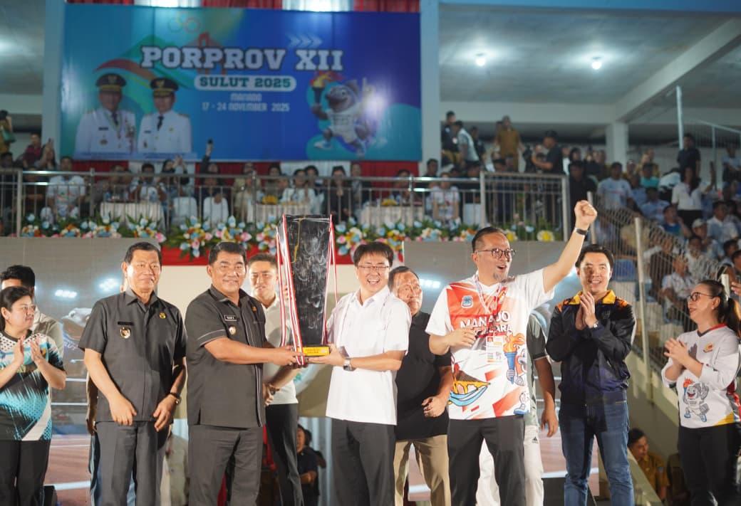 Ajang olahraga terbesar tingkat Provinsi Sulawesi Utara, Pekan Olahraga Provinsi (Porprov) XII Tahun 2025 resmi ditutup oleh Gubernur Yulius Selvanus di Stadion Klabat Manado, Senin (24/11/2025). Penutupan ajang ini dihadiri langsung Wakil Gubernur Victor Mailangkay, para kepala daerah se-Sulut, serta Wakil Bupati sekaligus Ketua KONI Bolsel Deddy Abdul Hamid.