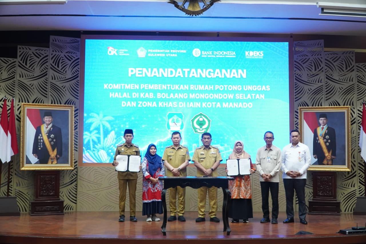 Dalam kesempatan itu, sosok egaliter ini juga menandatangani nota kesepahaman (MoU) optimalisasi PAD antara Pemprov Sulut dengan 15 kabupaten/kota bersama Bank SulutGo, serta MoU dukungan program KDEKS berupa sertifikasi halal RPU di Bolsel.