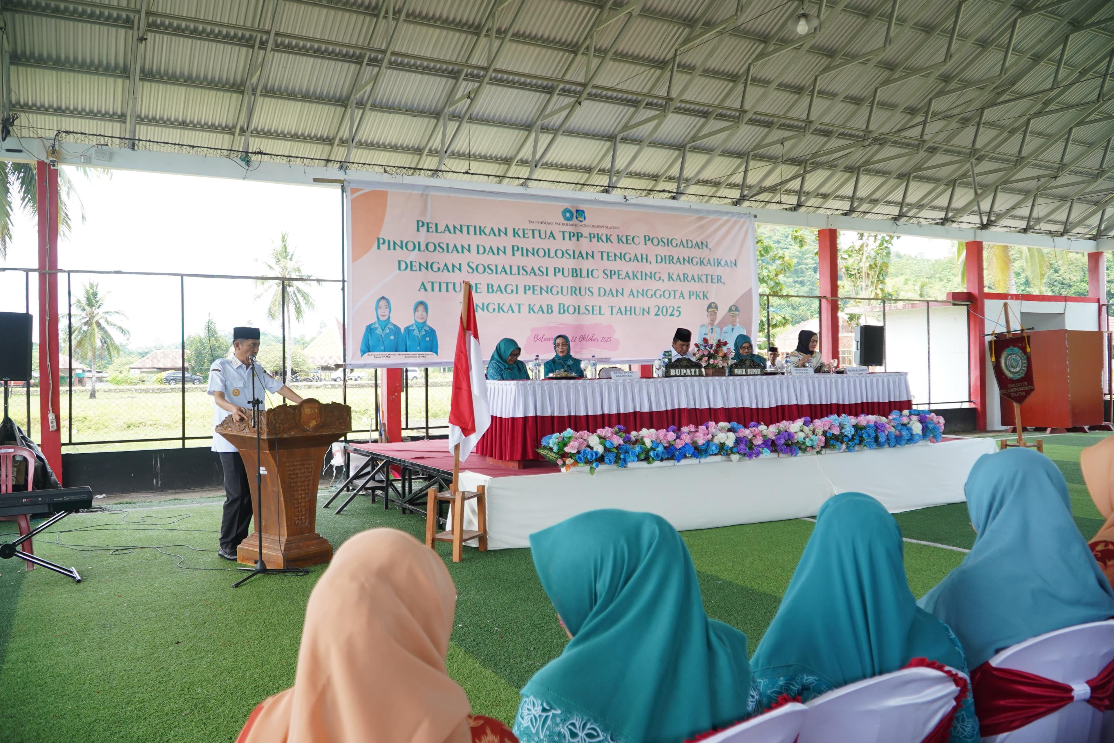 Kegiatan yang digelar di Lapangan Futsal Kompleks Perkantoran Panango, Kec. Bolaang Uki pada Rabu (22/10/2025) juga dirangkaikan dengan pelantikan Ketua TP-PKK Kecamatan Pinolosian, Pinolosian Tengah, dan Posigadan. Hadir langsung Bupati H. Iskandar Kamaru SPt, MSi dan Wakil Bupati Deddy Abdul Hamid, serta jajaran pejabat daerah, Sekretaris TP-PKK Ny. Rosdiana Abdul Hamid-Lapatola bersama jajaran pengurus.